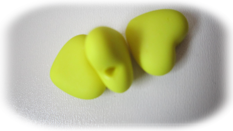 5 Stk. Acryl Herzen in der Farbe gelb gefrostet, ca. 11mmx12mm.