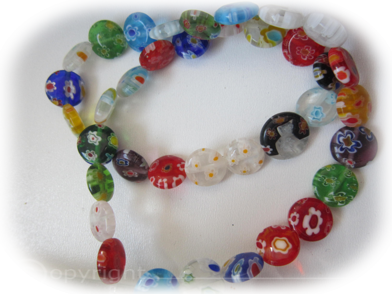 1 Strang Millefiori 10mm durchmesser, ca 40 Stk. pro Strang. Jeder Strang ist mit verschiedenen Farben und verschieden sortiert.